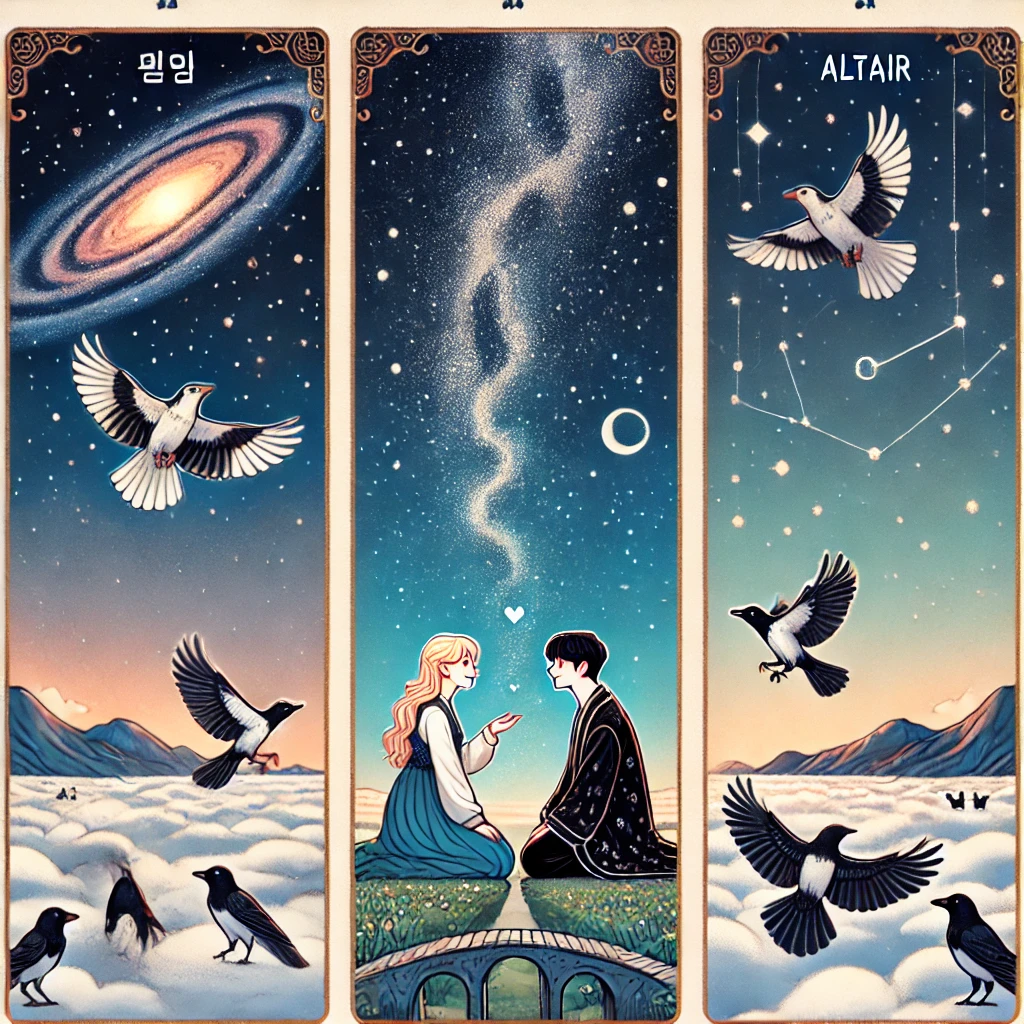 - 단, 1년에 단 하루, 칠석날 밤만은 까마귀와 까치가 다리를 놓아